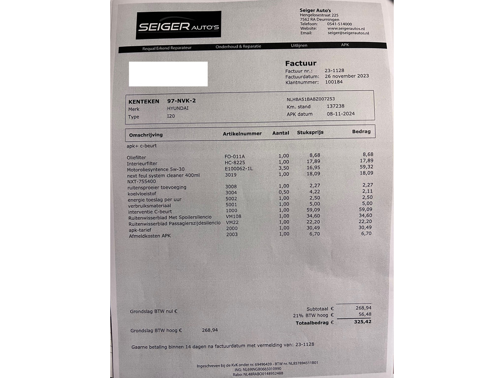 - Onderhoudsboekje aanwezig?