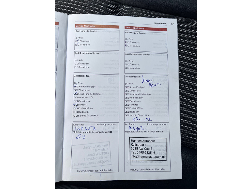 - Onderhoudsboekje aanwezig?