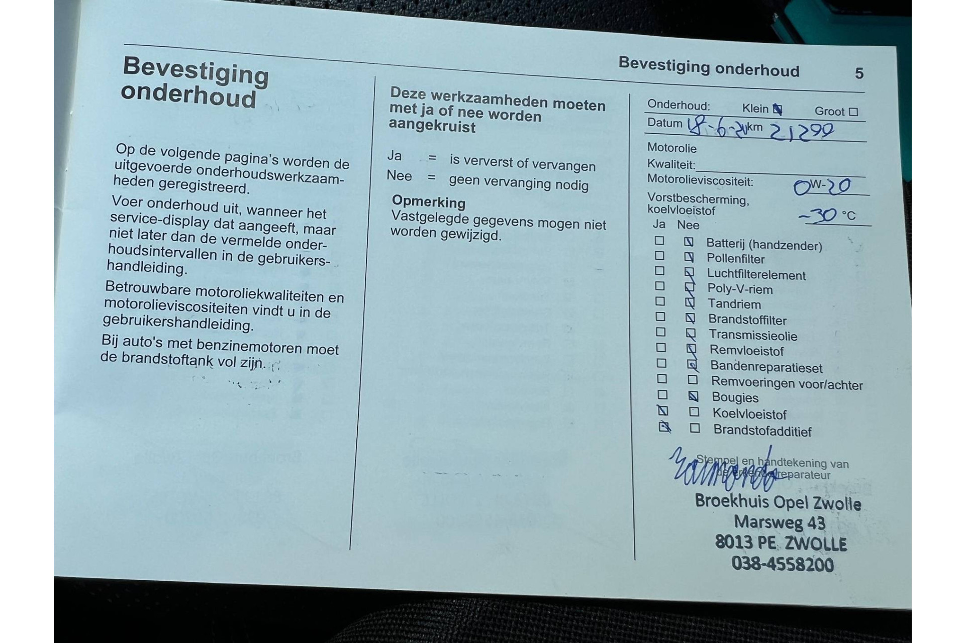 - Onderhoudsboekje aanwezig?
