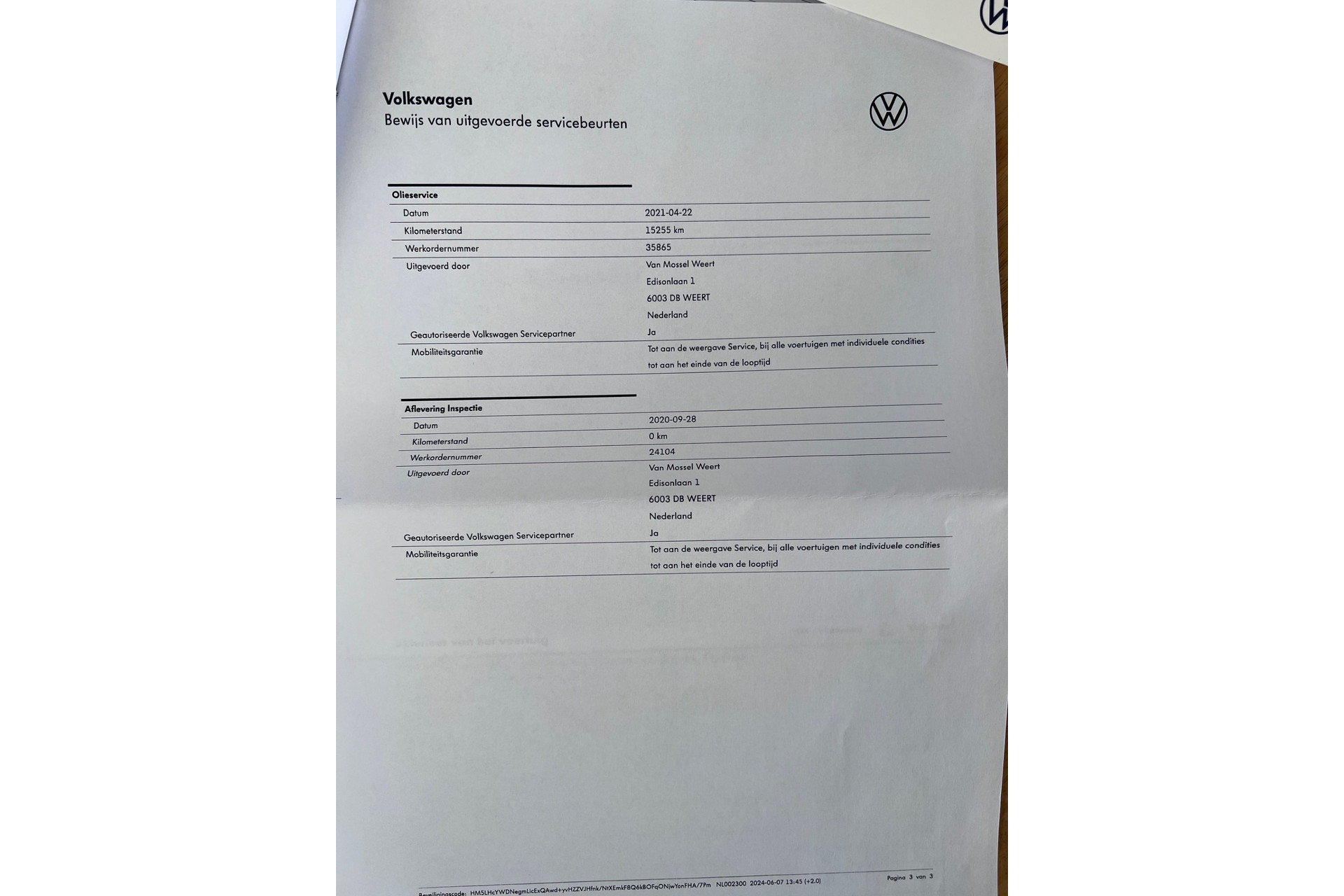 - Onderhoudsboekje aanwezig?