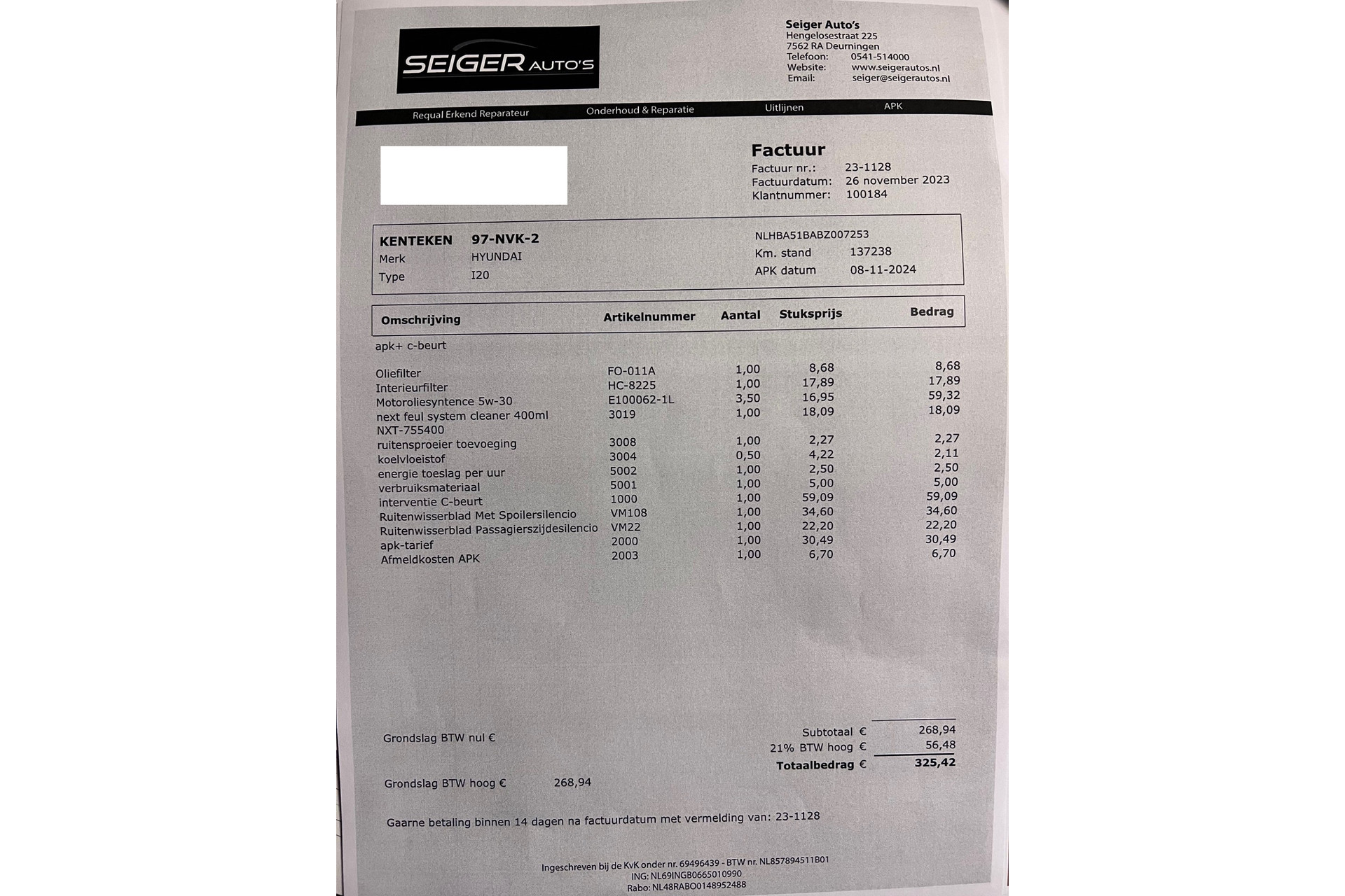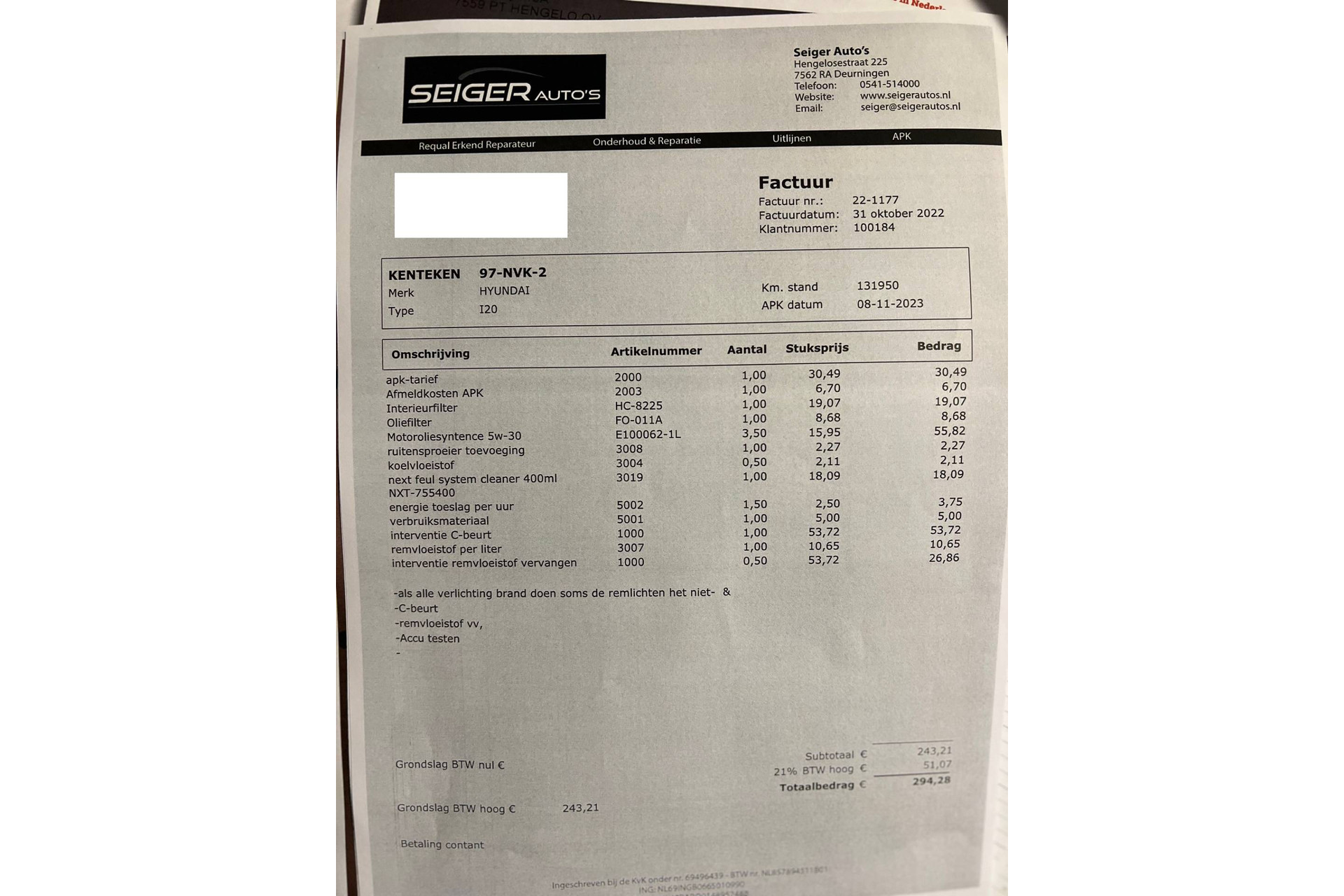 - Onderhoudsboekje aanwezig?